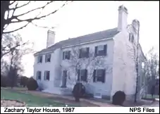 Le père de Zachary Taylor, le colonel Richard Taylor, achète une ferme de 400 acres composée d'un terrain humide le long du ruisseau Beargrass Creek en 1785. Zachary n'était alors âgé que de huit mois. Ils vivent au début dans une cabane sur la propriété. Durant cinq ans, Richard Taylor construit une maison au plus haut point de sa propriété, en la nommant Springfield. En 1800, Richard Taylor achète trois cents acres supplémentaires. Zachary Taylor quitte la maison en 1808 pour commencer sa carrière militaire. Il y revient toutefois pour se marier le et cinq de ses six enfants naissent dans la maison. En 1829, la maison est vendue à la mort de Richard Taylor en raison des dettes qu'il a acquises. Zachary Taylor est enterré dans le cimetière de famille présent sur la propriété ; ce cimetière deviendra plus tard le Zachary Taylor National Cemetery.