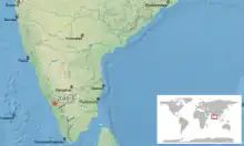 Cette espèce est endémique des Ghâts occidentaux en Inde[1]. Elle se rencontre au Maharashtra, au Kerala et au Tamil Nadu entre 400 et 1 250 m d'altitude.
