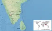 Cette espèce est endémique du Sud des Ghâts occidentaux en Inde[1]. Elle se rencontre dans les États du Kerala et du Tamil Nadu, entre 800 et 1 600 m d'altitude.