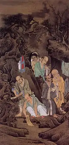 ![]() La lessive des arhats. Rouleau suspendu, 1178. Encre et couleur sur soie, 118 x 53,1 cm. |