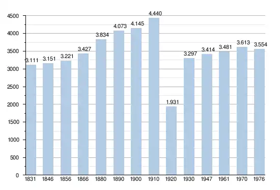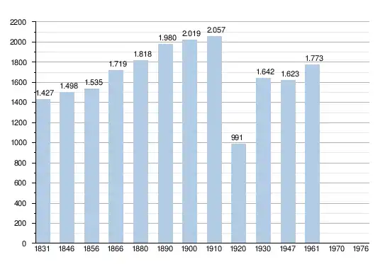 - Sources : INS, Rem. : 1831 jusqu'en 1970 = recensements, 1976 = nombre d'habitants au 31 décembre[2].