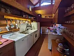Elle est construite sur un vaste terrain arboré, avec de vastes baies vitrées, des murs en béton, brique, et en panneau de bois de Cyprès, avec une terrasse, et 2 chambres à l'étage. Elle est organisée autour d'une grande cheminée centrale en forme de L, avec de nombreux meubles intégrés.