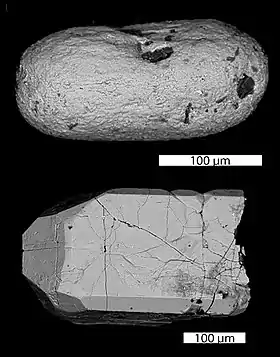 Les zircons hadéens constituent le matériau crustal le plus ancien de la Terre à l'Hadéen, il y a environ 4 milliards d'années. Le zircon est un minéral couramment utilisé pour la datation radiométrique, car il est très résistant aux changements chimiques et apparaît sous forme de petits cristaux ou grains dans la plupart des roches hôtes ignées et métamorphiques[1]. Ils sont datés entre -3,8 Ga et -4,4 Ga pour les plus vieux (âge U-Pb), cela correspond à une époque très proche de la formation de la Terre[2].