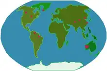 Malgré sa rareté sur Terre, il existe plusieurs occurrences de zircons de cette époque dans six pays : Australie, Brésil, Canada, Chine, Groenland et Guyana.