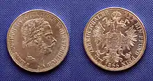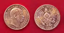 En outre, des pièces d'or sont introduites, qui ne sont toutefois pas apparentées avec les futurs Goldmark (mark-or) en 1871[58]. Les accords avec l'Autriche ne durent toutefois pas longtemps, le pays ne réussissant pas à lutter contre son inflation. Celle-ci étant amplifiée par l’impression de monnaie papier[46].