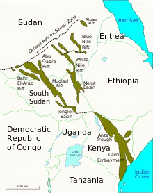 Au Soudan, la zone de cisaillement est suspectée d'avoir joué le rôle d'une barrière structurelle au développement des bassins sédimentaires profonds du Crétacé-Tertiaire au nord de la zone. Les objections à cette théorie sont que le rift du Bahr el Arab (en) et le rift du Nil Bleu (en) s'étendent au nord d'une ligne proposée comme frontière de la zone de cisaillement[7]. Cependant, l'alignement des extrémités nord-ouest des rifts est conforme à la théorie[8].