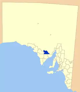 | Région de Goyder | Burra | 1997 | 6715 | 0,6 | 4 254 | 4 206 | Fusion des districts de Burra Burra, Eudunda, Hallet et Robertstown. | ![]() |