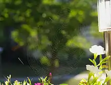 La construction de la toile ne semble pas affectée (dans la nature ou en laboratoire) par la proximité de congénères mais la taille de la toile peut être modifiée quand plusieurs femelles sont en présence[5] ; la présence de nombreuses proies semble également encourager l'araignée à reconstruire sa toile plus souvent[6].