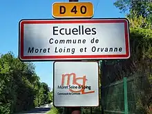 Panneau d'agglomération d’Écuelles en Seine-et-Marne.