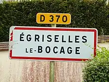 Panneau d'agglomération d'Égriselles-le-Bocage.
