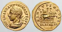 Aureus d’Héliogabale (ou Élagable) portant au revers Elagabal.