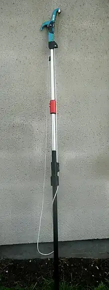 - (Agriculture) (Par extension) Ce même instrument qui sert à couper des branches hautes sans utiliser d’échelle.