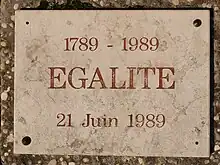 Plaque qui commémore le principe d’Égalité de 1789.