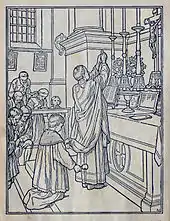 - (Christianisme) Moment de la messe où le prêtre élève l’hostie.
