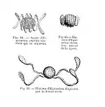 Les méiospores qu'ils contiennent s'échappent sous forme d'une abondante poussière verdâtre. Bientôt ils se livrent à des bonds saccadés qui sont dus à quatre élatères en forme de rames, élargies et aplaties au sommet, granuleuses et insérées en un même pôle de la méiospore. Ces élatères sont formées par la plus extérieure des trois membranes enveloppantes de la méiospore, épaissie en une spirale dont les tours se séparent les uns des autres par suite de la résorption de la portion de la membrane qui leur est interposée (fig.60). La dessiccation détermine la disjonction des élatères (fig.61), tandis que l'action de l'humidité les ramène enroulées autour de la méiospore (fig.62).