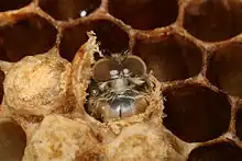 - (Apiculture) Sortie d’un jeune adulte de la cellule de couvain dans laquelle il s’est développé.