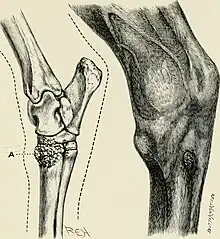 Le jardon est toujours situé au-dessous de la pointe du jarret, c’est dʼun effort de tendon; on peut y appliquer quelques pointes de feu comme à lʼépervin.
