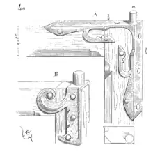 - (Héraldique) Meuble représentant une équerre de charpentier dans les armoiries. Elle est parfois utilisée comme bordure partielle de quartier (→ voir escarre).
