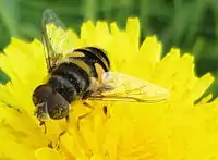 L'éristale des fleurs est une "mouche" commune souvent confondue avec l'abeille à cause de sa taille, elle appartient à la famille des syrphidés.