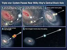 Mécanisme proposé pour l’éjection des étoiles intergalactiques faisant intervenir un trou noir supermassif.