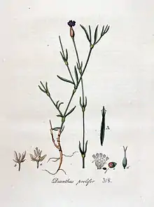 - (Botanique) Espèce d’œillet, plante herbacée annuelle à petites fleurs roses.