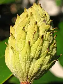 - šácholan velkokvětý, magnolia à grandes fleurs.