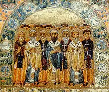 Отцы Церкви на миниатюре из Изборника Святослава (1076).