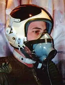 Шолом льотчика з ларингофоном (Casque de pilote avec un laryngophone [ruban blanc autour du cou])