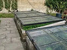 - (Agriculture, Jardinage) Serre, culture consistant à semer dans une terre protégée des intempéries, de façon à avoir une récolte avant la saison normale.