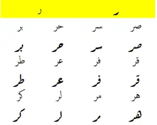 - Le ر (r) est une vibrante alvéolaire, un [r] roulé comme en espagnol ou en italien. Il importe de toujours bien le distinguer du [r] français standard, qui est en arabe une autre consonne, le غ (R).