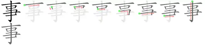 - Kun’yomi : こと (koto), つか.う (tsuka.u), つか.える (tsuka.eru), ろ* (ro)