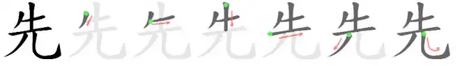 - Kun’yomi : さき (saki), さきんじる (sakinjiru), まず (mazu)