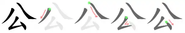 - Composés de 公 dans le ShuoWen : 瓮, 頌, 衮, 伀, 松, 䚗, 翁, 訟