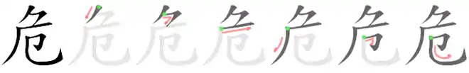 - Kun’yomi : あやうい (ayaui), あぶない (abunai), あやぶむ (ayabumu)