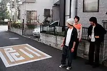 Abréviation furigana 危い abui en présentation horizontale étroite sur un marquage au sol.