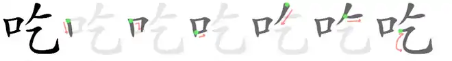 吃 (khật, hấc, hất, hớt, ngát, ngặt, ngật, ực, cật)