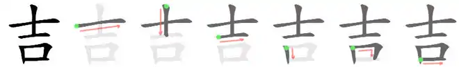 - Composés de 吉 dans le ShuoWen : 劼, 蛣, 結, 姞, 拮, 鮚, 壹, 𡔢, 黠, 硈, 髻, 頡, 欯, 袺, 佶, 桔, 詰, 𪗾, 趌