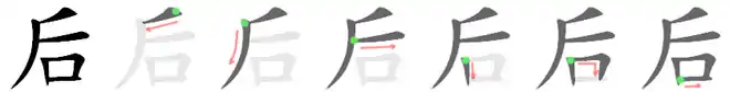 - Composés de 后 dans le ShuoWen : 垢, 姤, 郈, 缿, 詬, 逅, 茩