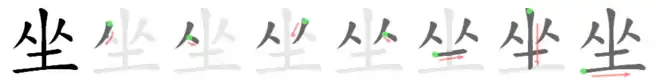 - Composés de 坐 dans le ShuoWen : 銼, 髽, 侳, 痤, 夎, 剉, 睉, 趖, 莝