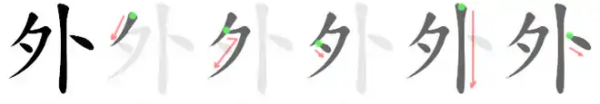 - Kun’yomi : そと (soto), ほか (hoka), はず (hazu)