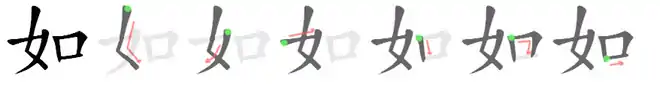- Composés de 如 dans le ShuoWen : 絮, 挐, 恕, 帤, 𨚴, 茹