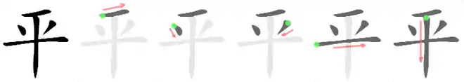 - Composés de 平 dans le ShuoWen : 坪, 抨, 泙, 䶄, 枰, 𤘾, 苹