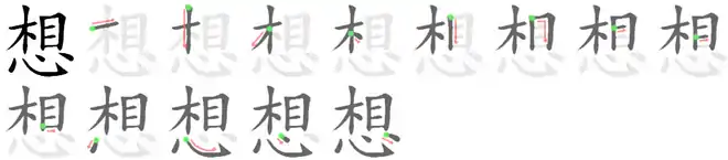 - 想念 (xiǎngniàn, « penser à, se souvenir de »)