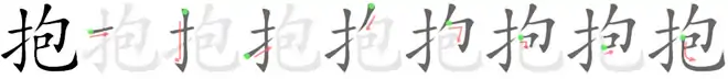- Dérive de 包 (allaitement), spécifié par 手 (action manuelle) : prendre ou tenir un objet dans les bras ; autant qu'un homme peut tenir entre les bras ; la partie extérieure de la poitrine.