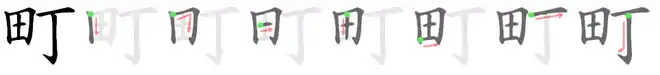 - Dérive de 丁 (qui dépasse comme un clou), spécifié par 田 (terrain, culture) : talus servant de sentier et de séparation entre champs ; limite, règle ; sentier dans un champ ; petit coin de terre.