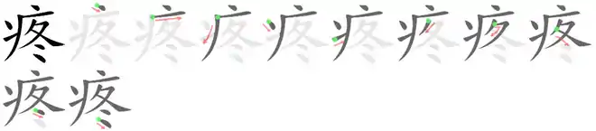 - Rangement dans les dictionnaires : Clé : 疒+ 5 trait(s) - Nombre total de traits : 10