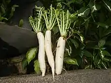 - (Botanique) Radis blanc (raphanus sativus var. longipinnatus).