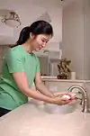 - Type : tableau composé : Le tableau représente de l'eau (水) versée sur deux mains (臼) au-dessus d'un bassin (皿) servant de lavabo.
