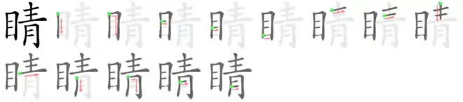 - Rangement dans les dictionnaires : Clé : 目+ 8 trait(s) - Nombre total de traits : 13