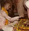 - (cérémoniaire) Celui qui, dans la cérémonie du sacrifice ou des offrandes, lisait des panégyriques en l'honneur des esprits, leur adressait des demandes, recevait et transmettait leurs réponses.